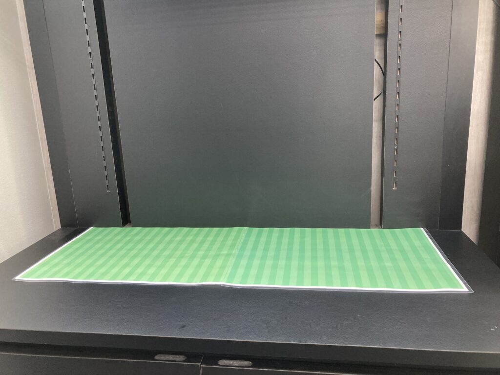 丁度、ショールームの什器スペースが空いたので、そこに設置しました!