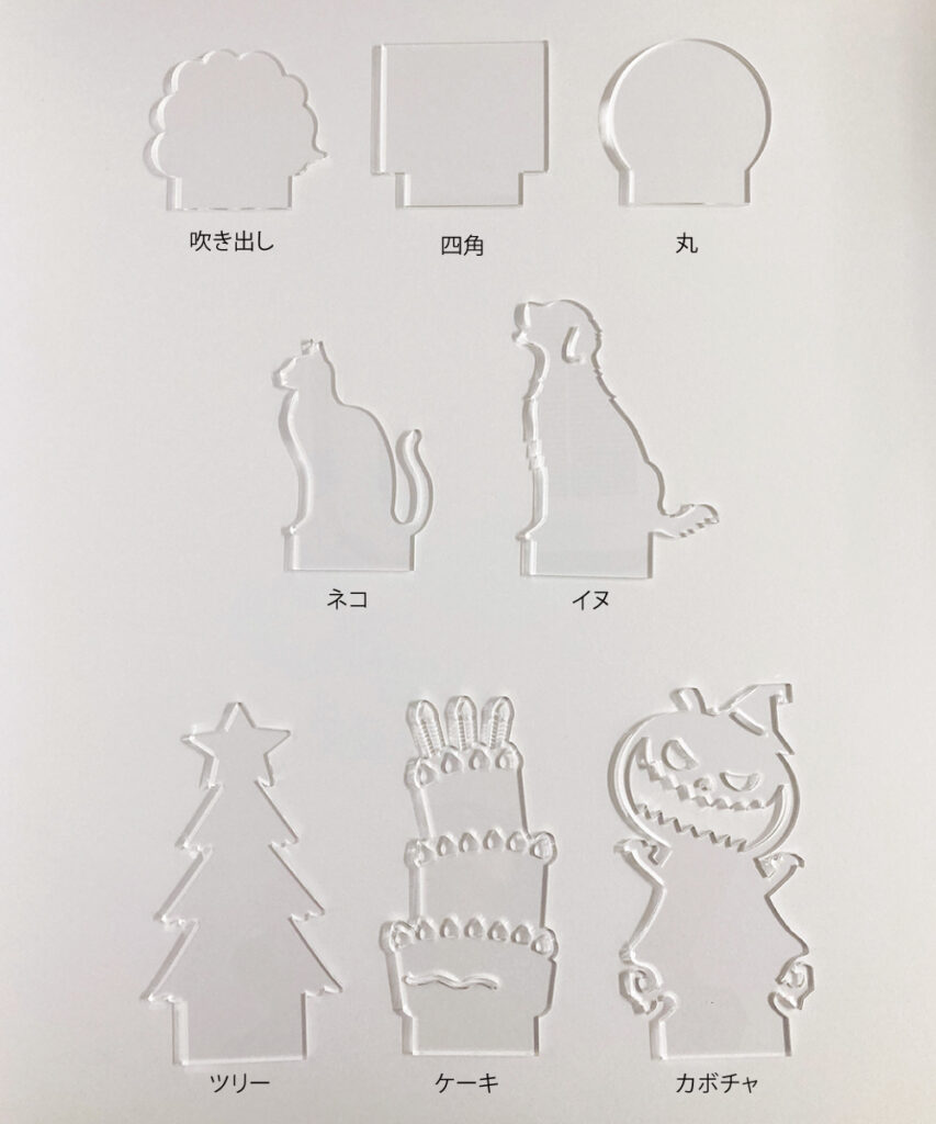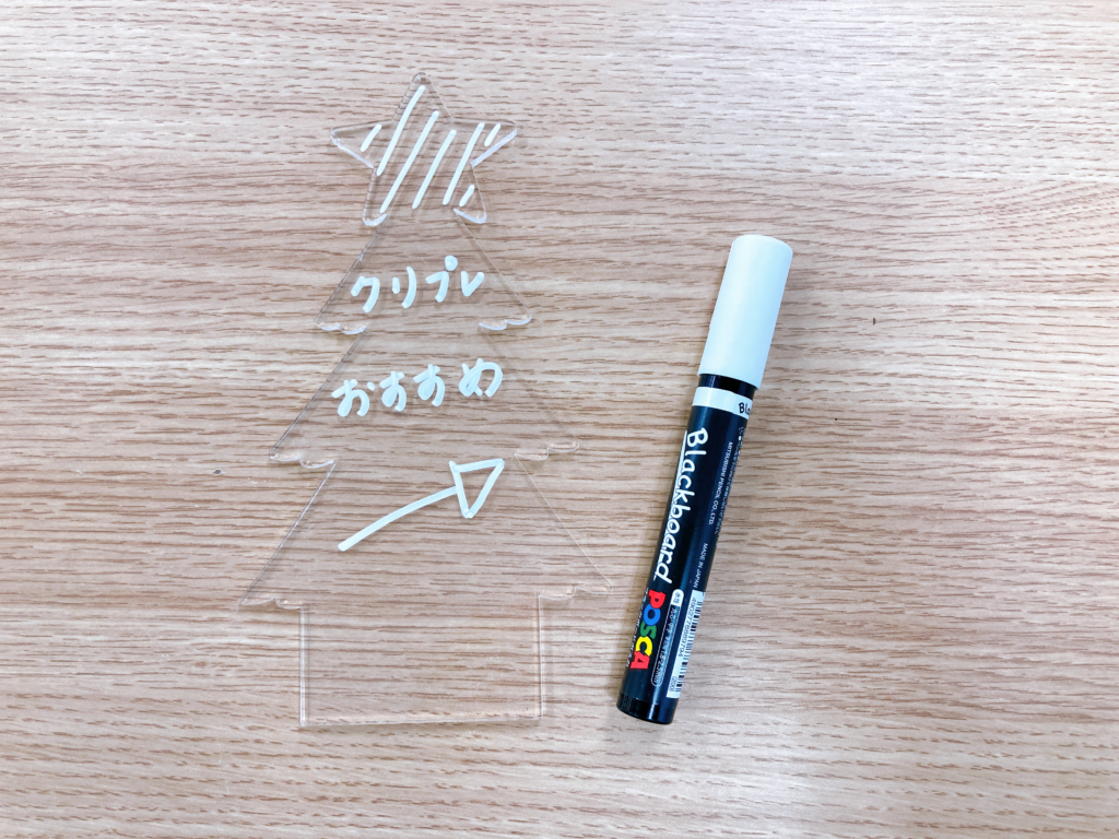 アクリルに文字を書いて、台座にはめ込むだけです。
