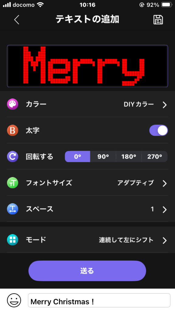 次の大きなイベントはクリスマス🎄文字を設定してみました。