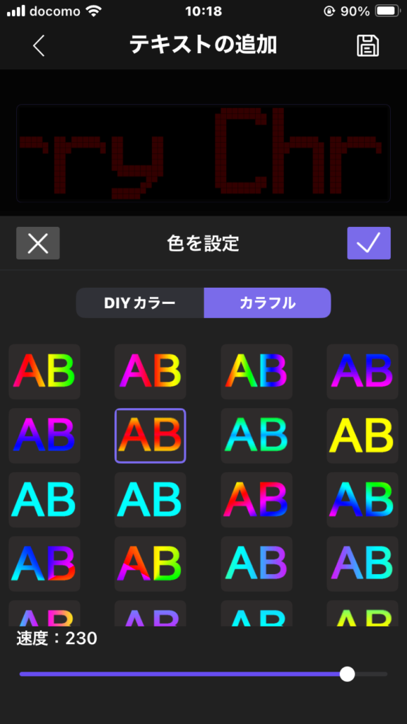 文字の種類、色、表示速度も選べます。