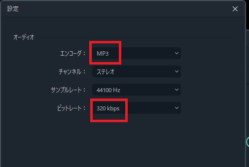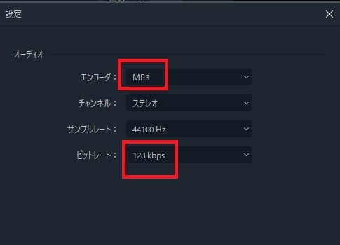 同じように音声が保存出来ない!!とお困りの場合は、ビットレートを小さくしてみてくださいね。