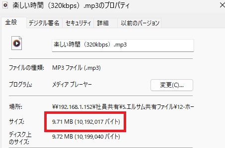 <パターン②> ビットレート320kbpsで出力した場合⇒9.71MB